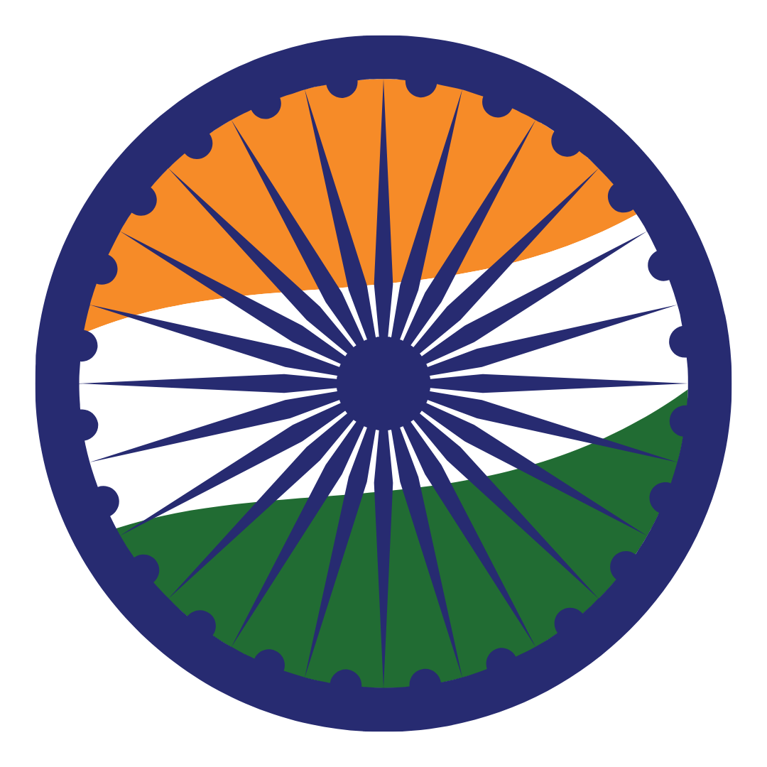 Ashoka Chakra Tricolor Badge featuring bold 24-spoke wheel design with tricolor segments. Ideal for patriotic celebrations.