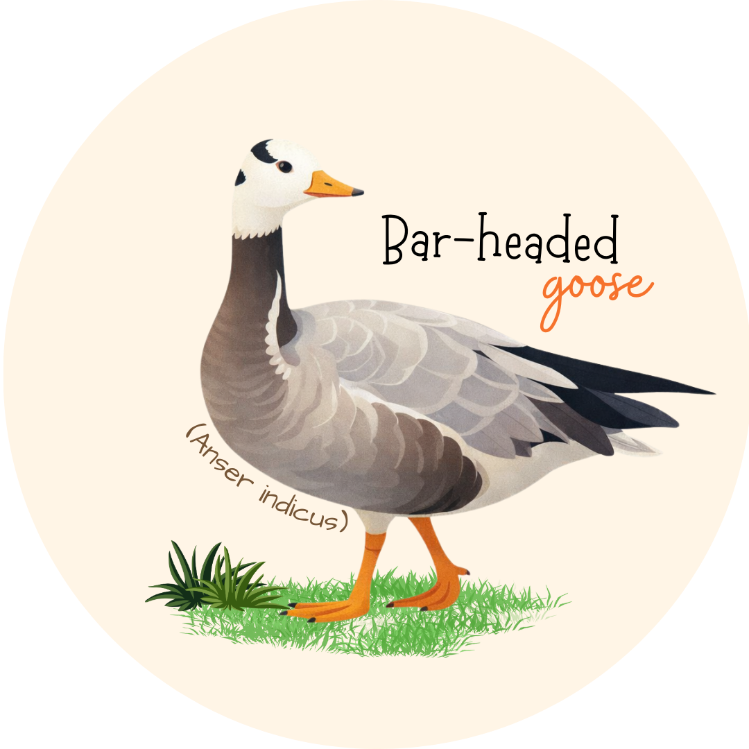 Bar-Headed Goose Wildlife Badge is a premium bird-themed accessory inspired by one of the most extraordinary migratory birds in the world — the Bar-Headed Goose (Anser indicus). Known for flying over the Himalayas at extreme altitudes, this species represents endurance, strength, and natural brilliance.