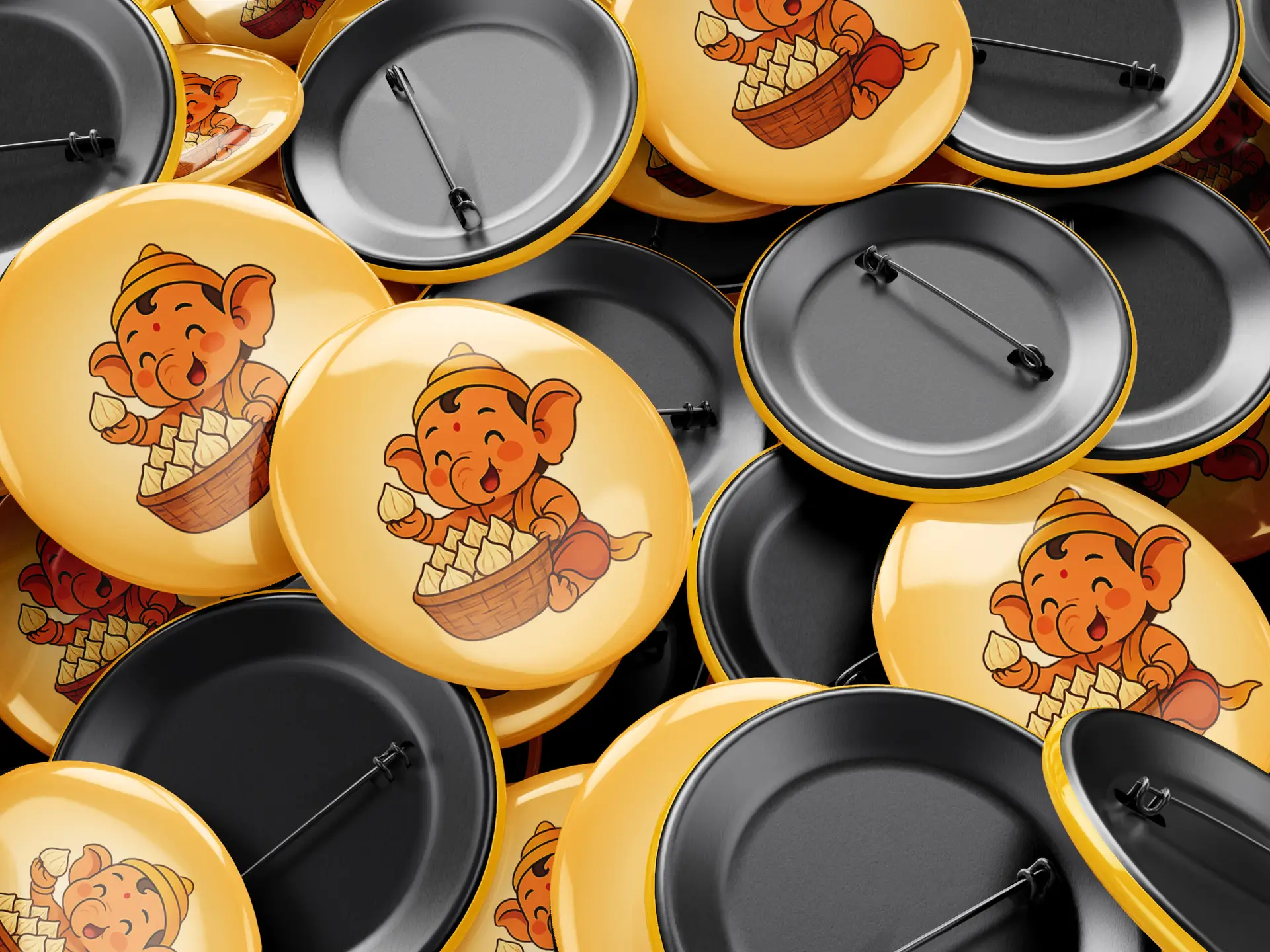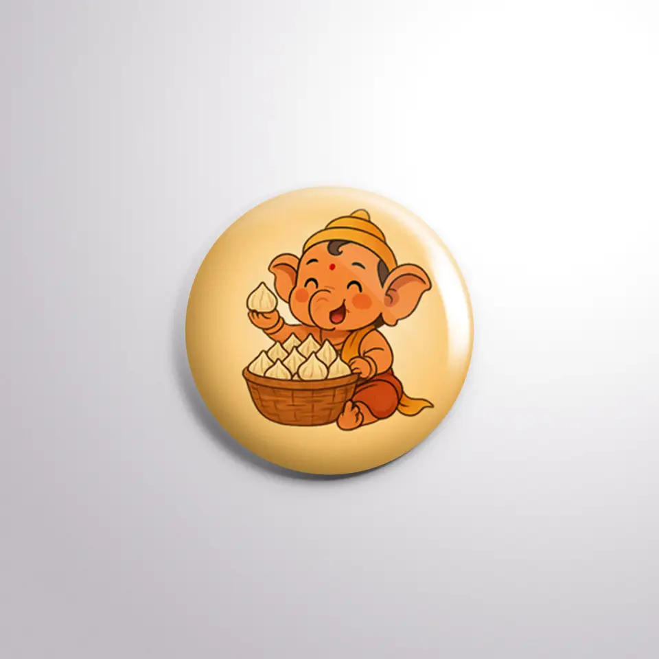 Celebrate the joy of Ganesh Chaturthi with our Modak Design Pin Badge, specially designed to capture the spirit of devotion in a stylish way.